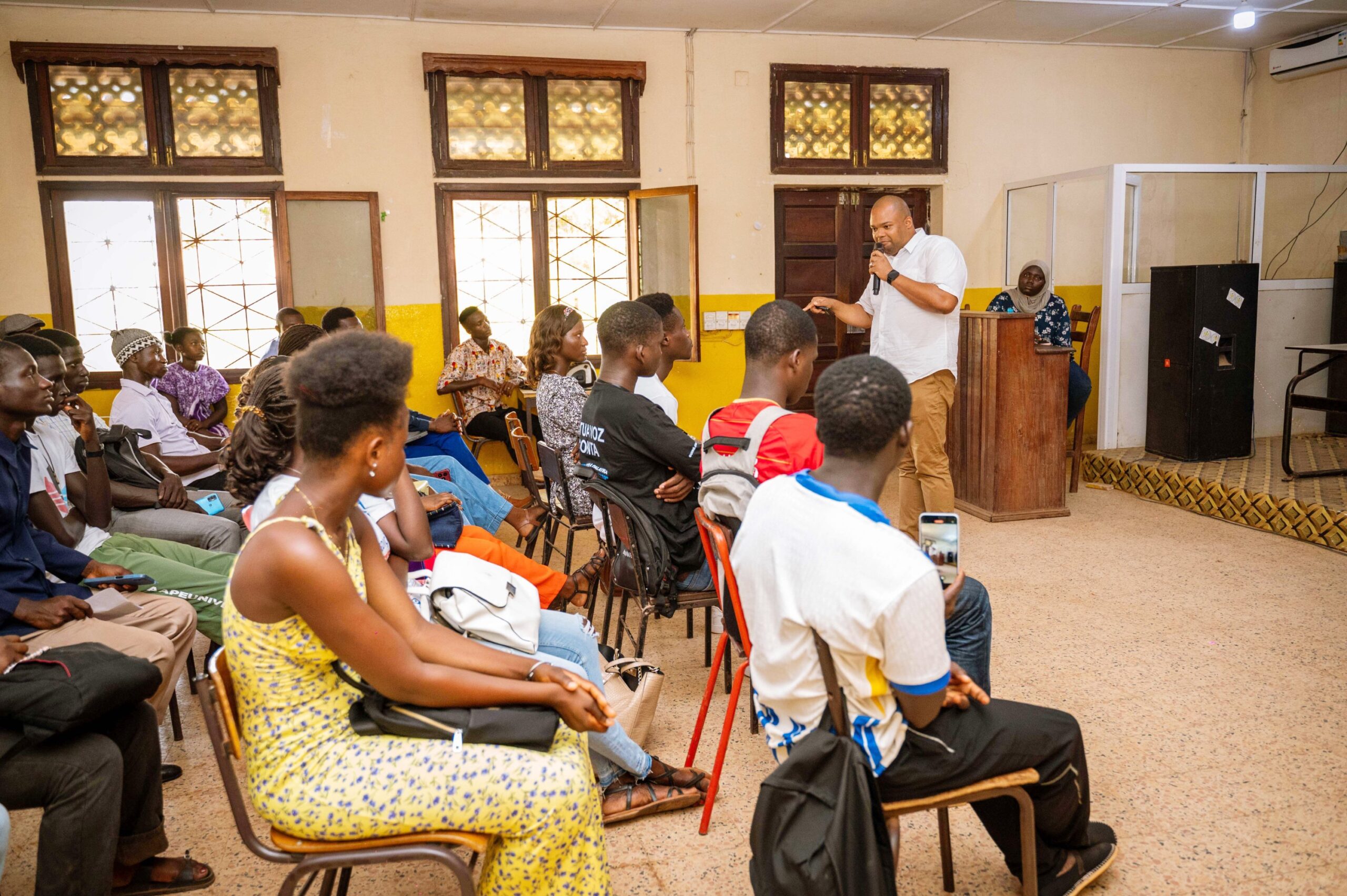 A convite da UNE-GB e do seu presidente, Matcho Indi, Laurentino Correia, CEO da Nô Kunsi Digital, Sarl, falou com dezenas de jovens sobre como o digital pode abrir portas — e também fechar — quando não é bem dominado.